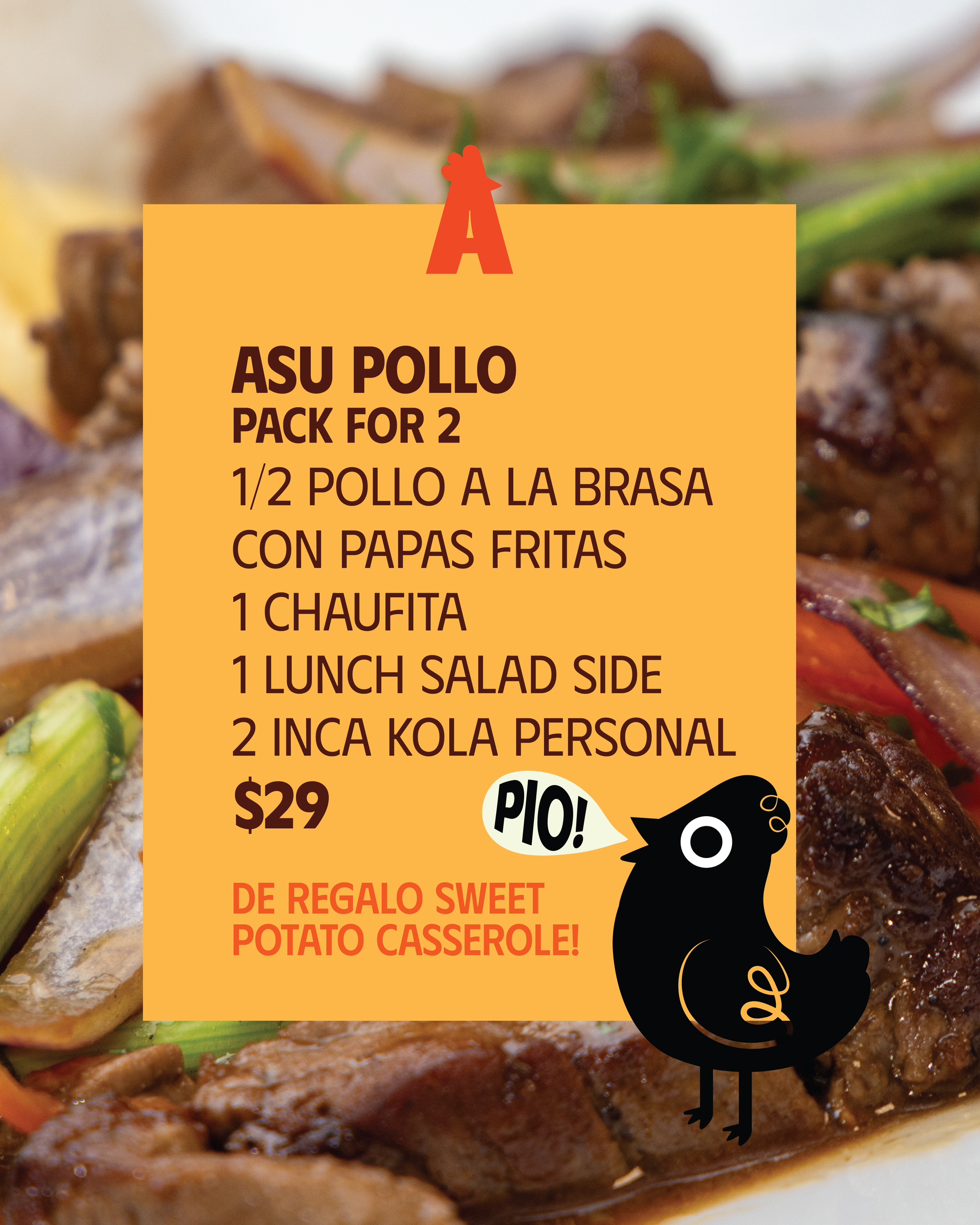 Si vas a celebrar con amigos antes del big day, Asu Pollo is the perfect option for delivery or pickup. ¡Rico, rápido y super convenient!